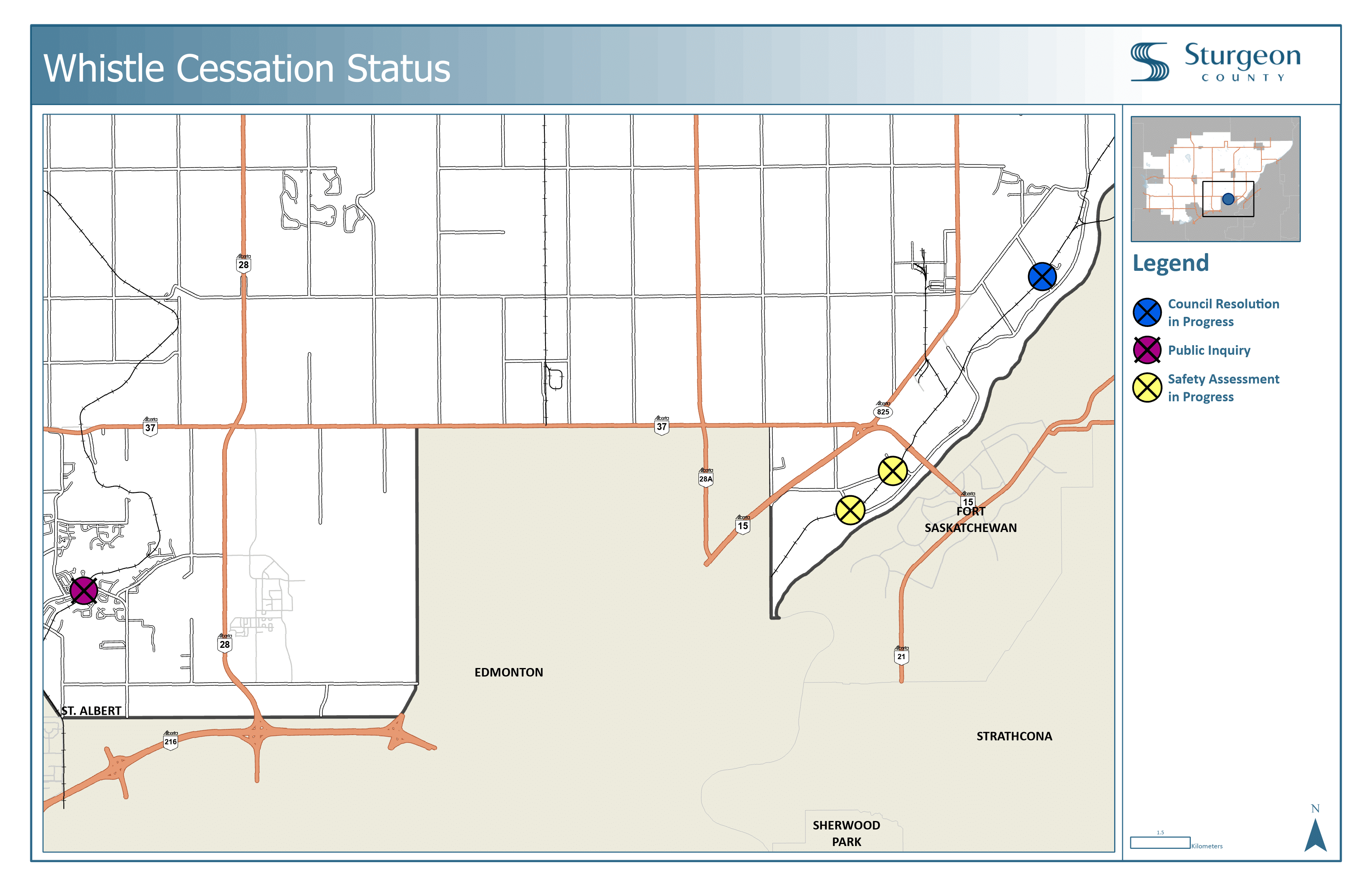 In 2021, Sturgeon County Council approved the Train Whistle Cessation Policy.